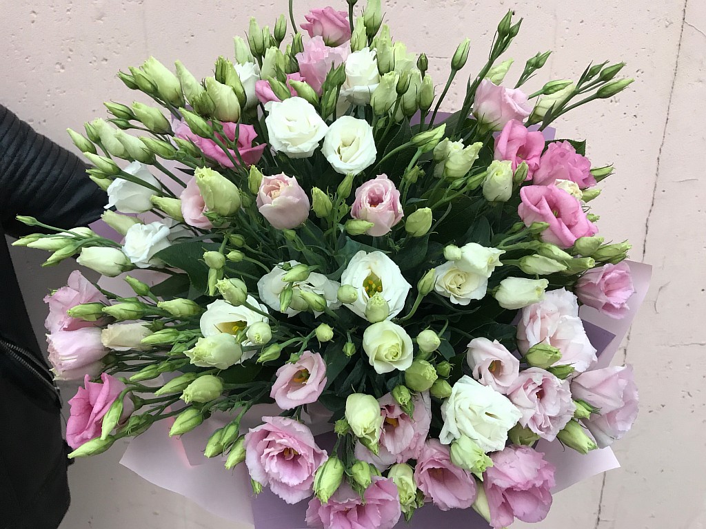 Необыкновенно легкая, немного таинственная комбинация эустомы нескольких тонов непременно вызовет улыбку на лице и радость на душе получателя. Этот нежный цветок великолепно смотрится как в однотонных букетах, так и в различных сочетаниях: бело – розовый, фиолетово – розовый, бело – фиолетовый, фиолетово – лавандовый…