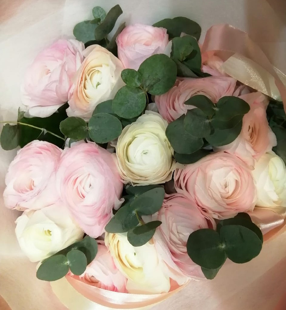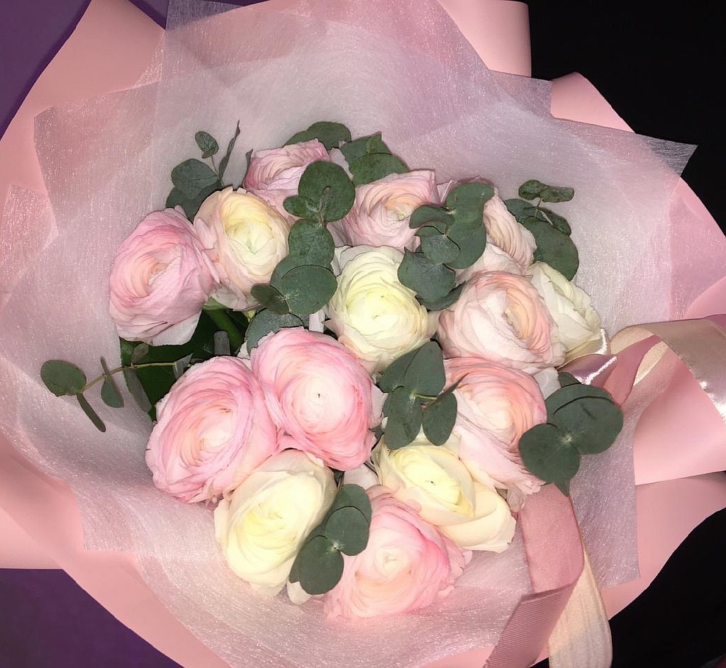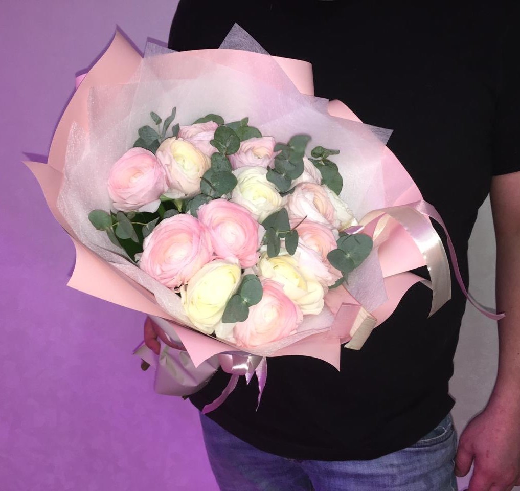 Букет из невероятно красивых, нежнейших ранункулюсов – символ шарма и привлекательности. Такой букет подходит и для особых случаев и для романтических встреч.